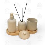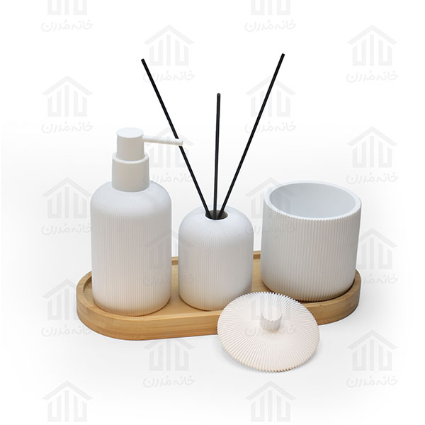 چوب بامبو بهکاررفته در این ست، در برابر رطوبت، شستوشو و تغییر شکل بسیار مقاوم است و در طول زمان دچار خرابی یا تغییر رنگ نمیشود.سرپمپ جا مایع روان و باکیفیت که استفاده روزمره را آسان می کند.